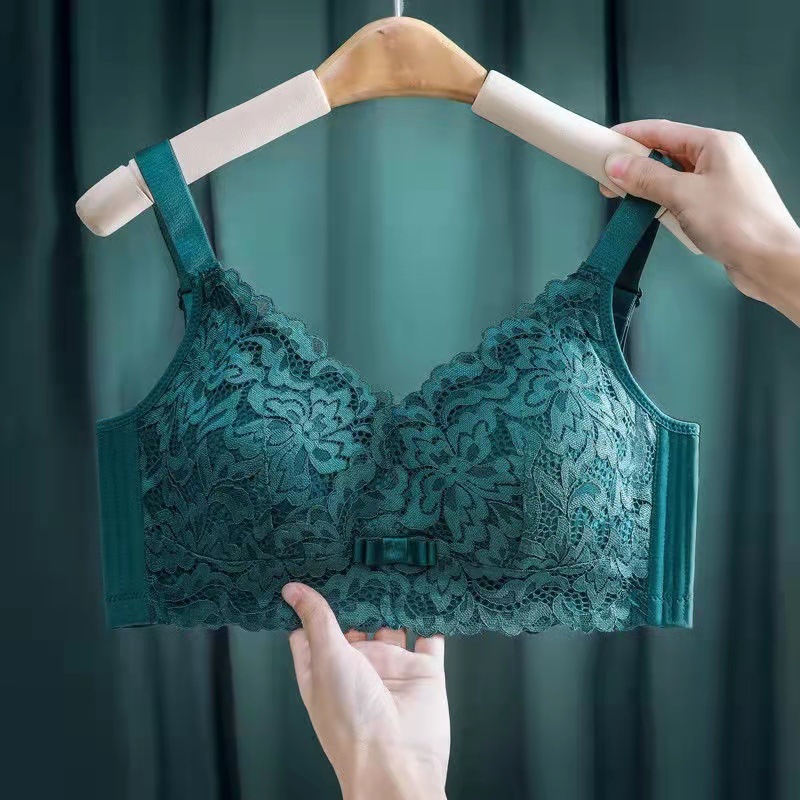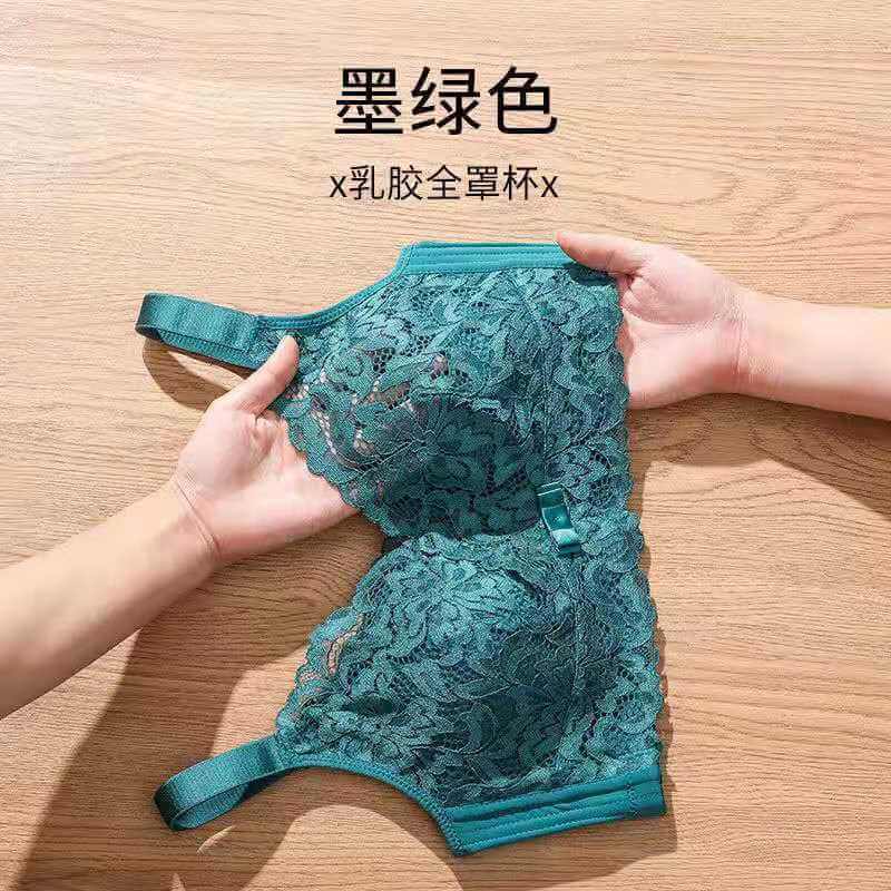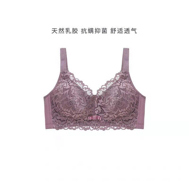 內衣_優雅女神_大碼大胸顯小蕾絲全罩杯乳膠內衣女士薄款側收副乳上托無鋼圈內衣BCD杯6色可選
