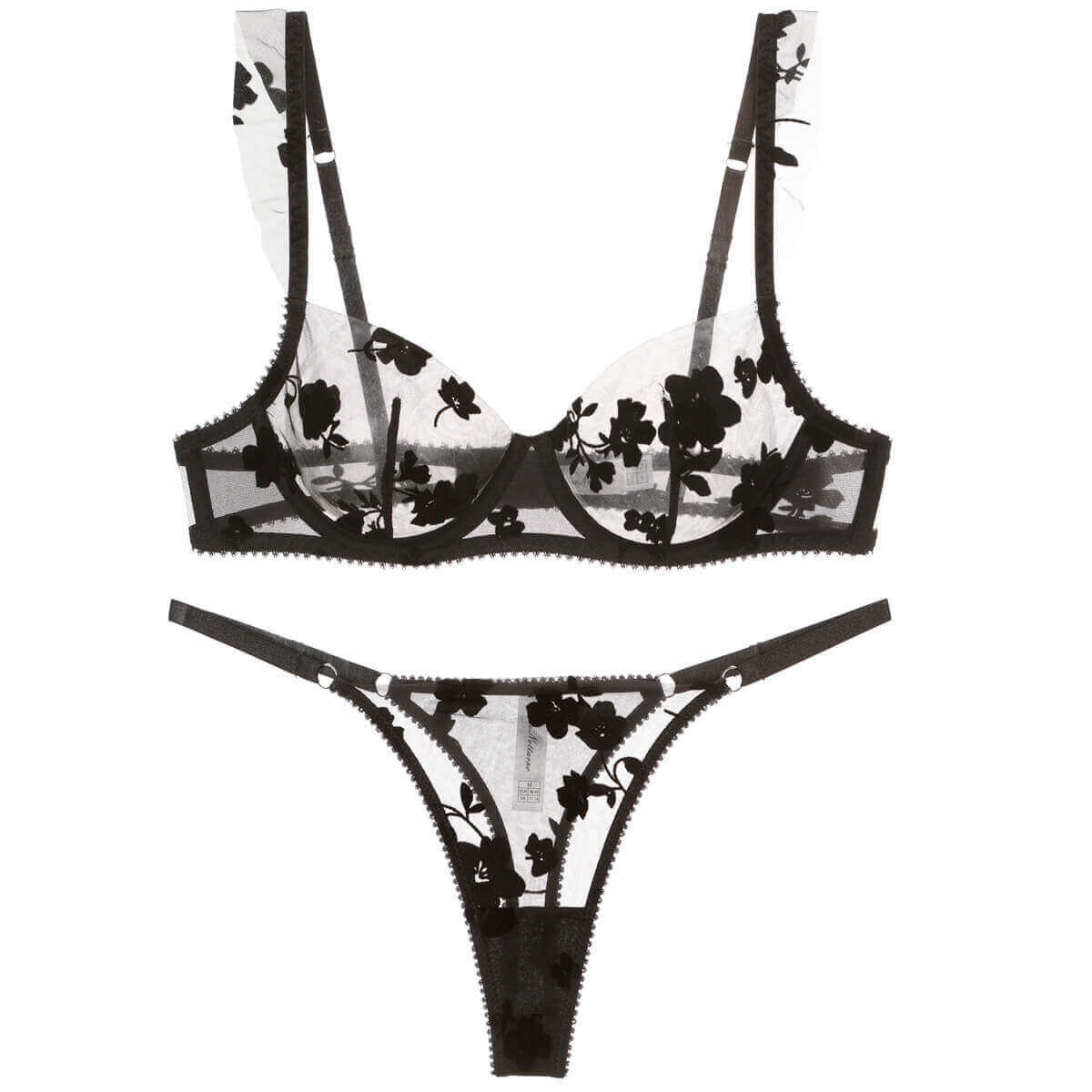 法式刺繡套裝!歐美性感情趣內衣法式超薄刺繡蕾絲文胸套裝大胸顯小防下垂文胸罩