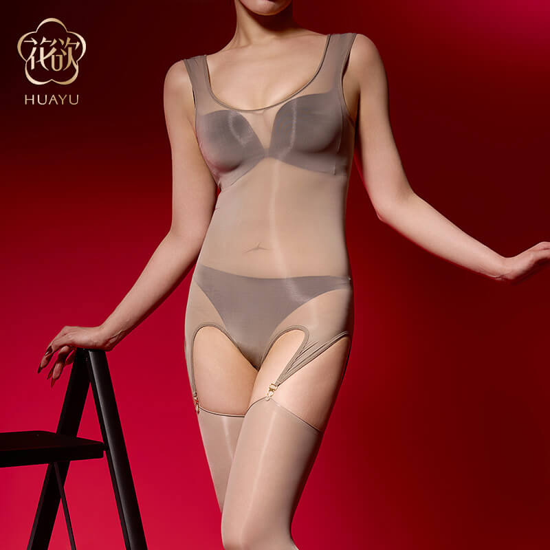 【愛粉*獨享】全身油亮塑身吊袜套装连体衣性感马油开裆情趣丝滑超薄5D丝袜内衣