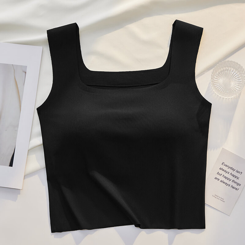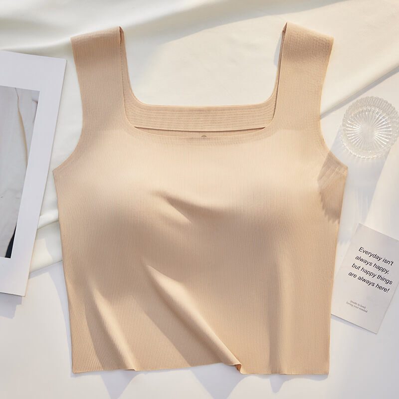 【背心】夏季無痕美背吊帶小背心女内搭打底方領防走光帶胸墊抹胸内衣露背