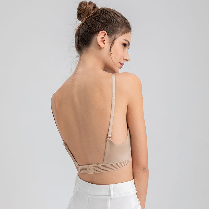大露背穿搭神奇!U型美背内衣女性感聚拢无痕光面胸罩交叉美背大露背隐形文胸