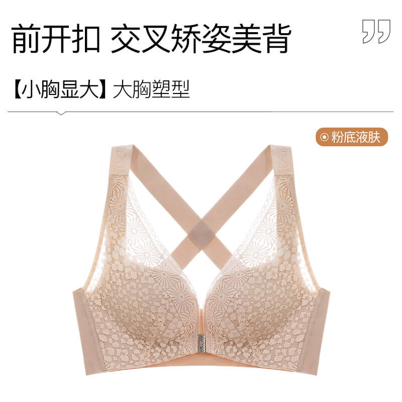 【CDE!前開扣 交叉矯姿美背】超大胸大碼前扣薄款内衣女聚攏收副乳無鋼圈胸罩大胸性感美背文胸