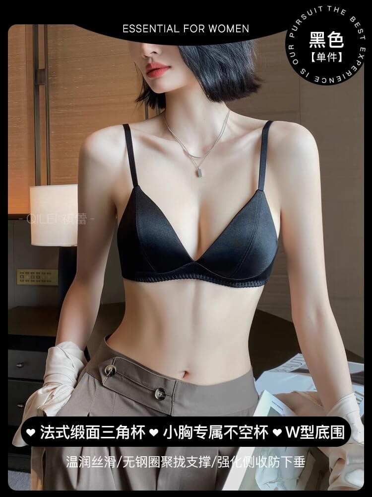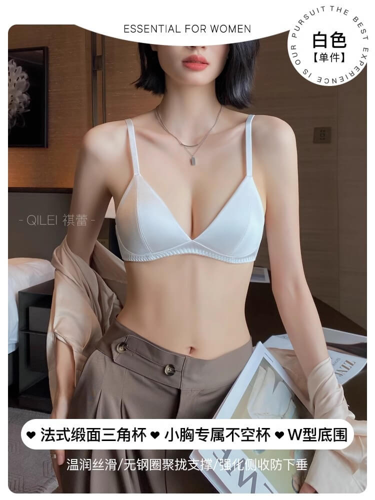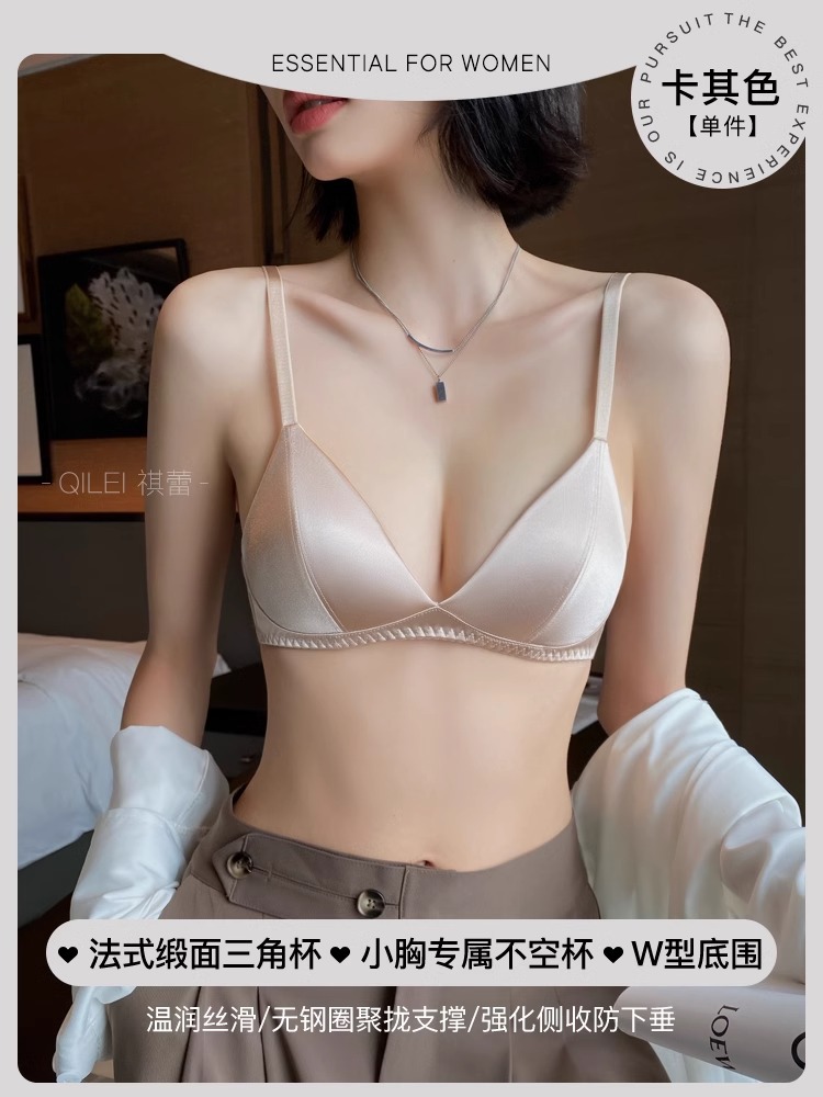 內衣_法式性感_三角杯内衣女薄款小胸聚攏不空杯無鋼圈法式性感深V緞面文胸罩夏3色可選A罩杯B罩杯