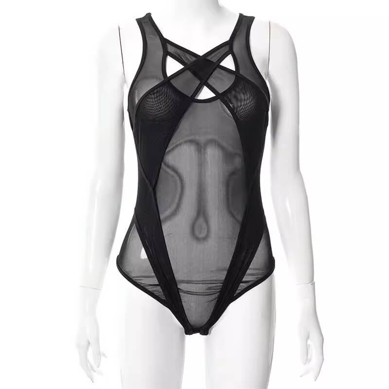 【透視镂空!性感緊身連體衣!】新款女士情趣内衣,撞色透視連體衣,塑形勾勒好身材!