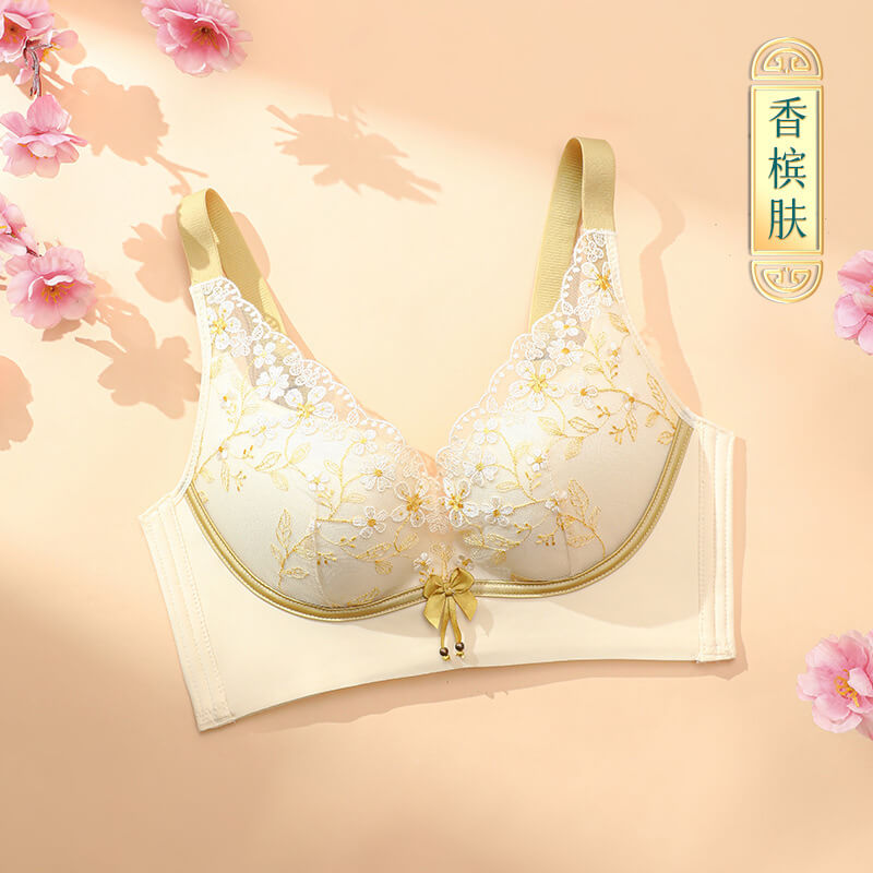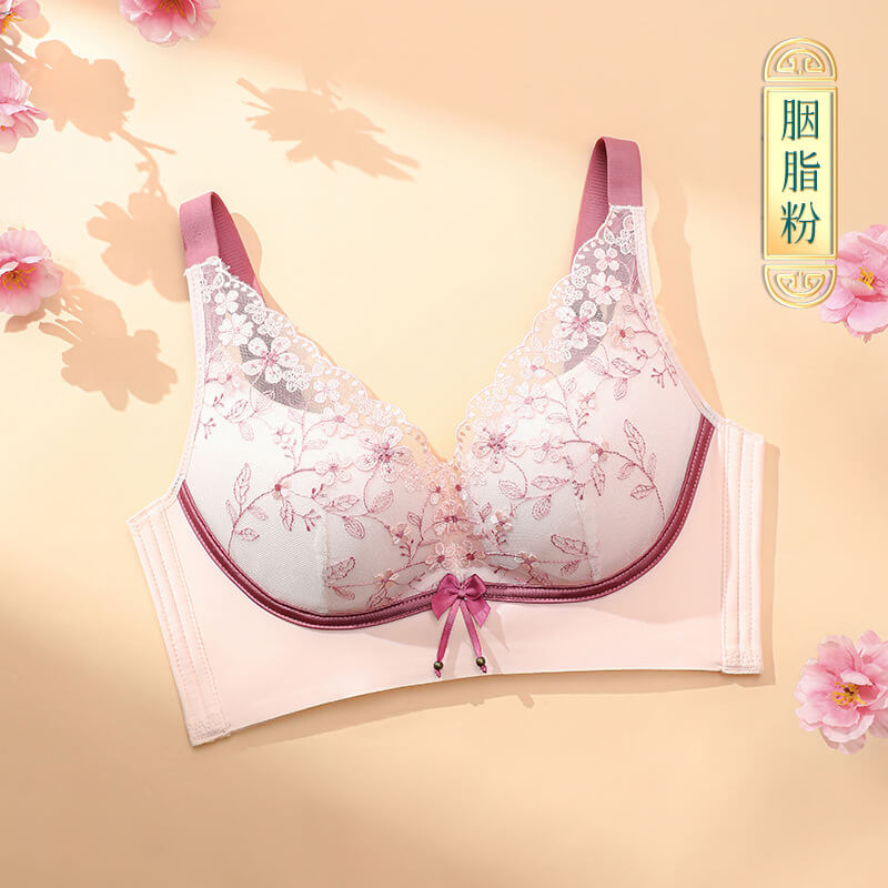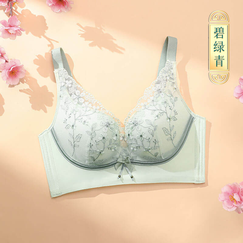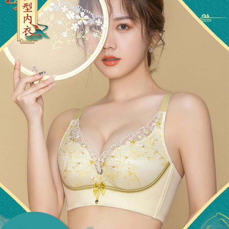 【刺繡文胸】新款文胸女國潮刺繡蕾絲刺繡小胸聚攏無鋼圈收副乳調整型女士内衣