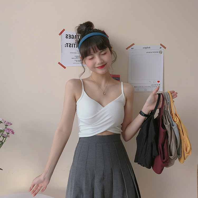 上衣_穿搭神器_秋季必備白色小吊带背心女辣妹外穿交叉美背性感抹胸设计感内搭短款上衣6色可選