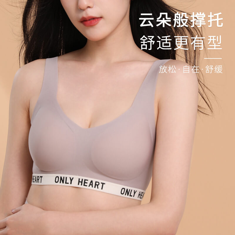 【雲朵般撐托】撞色字母無痕內衣!薄款無勒雲感軟托輕設計內衣!小胸聚攏舒適透氣無鋼圈美背調整形文胸!
