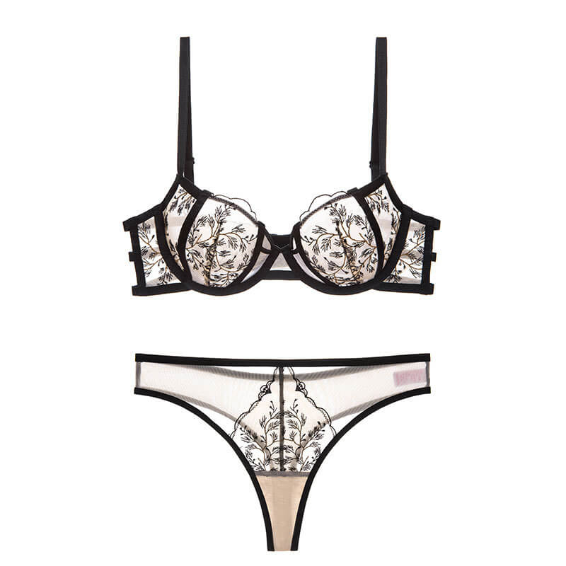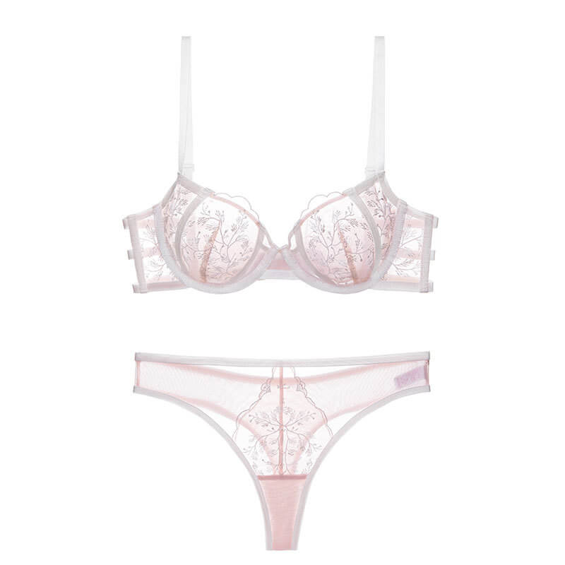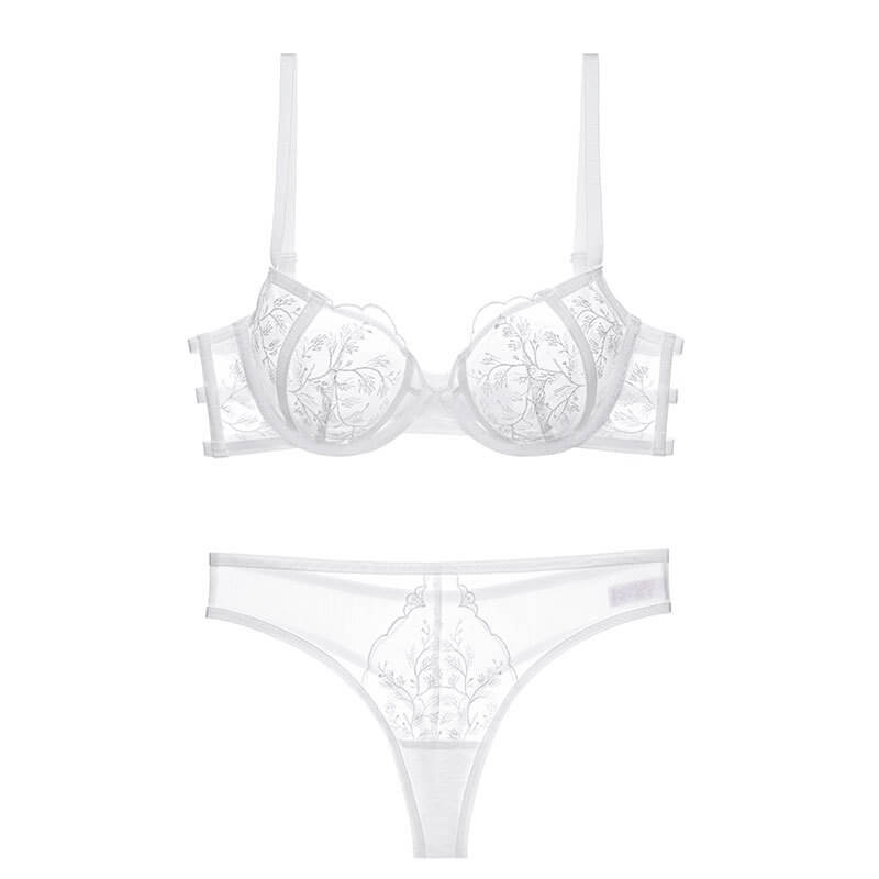 【刺繡文胸一套】性感刺繡蕾絲文胸夏季超薄款内衣套裝聚攏純欲大胸顯小防下垂胸罩