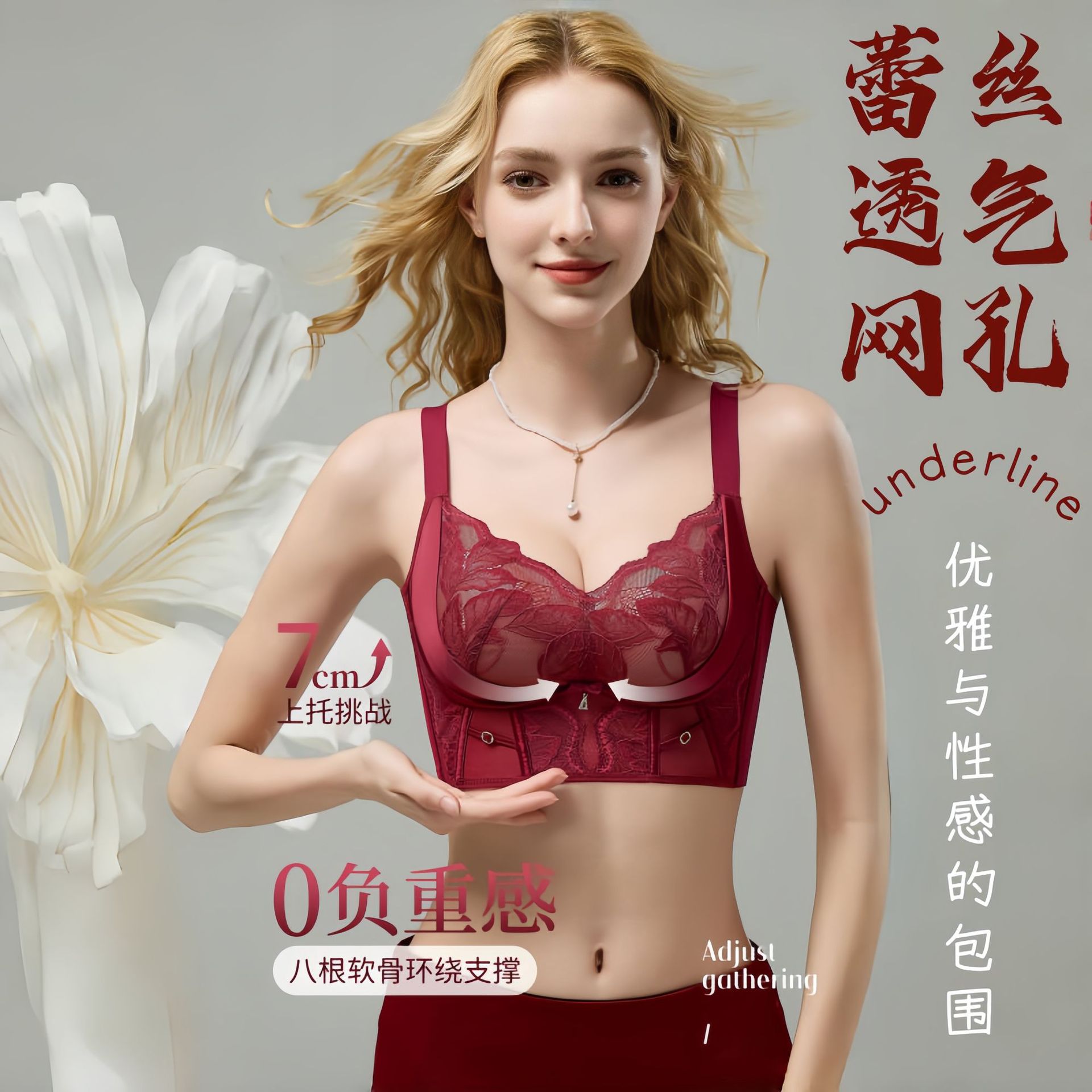 【提拉有型 聚攏集中】院線調整型透氣内衣女小胸聚攏蕾絲内衣女士無鋼圈抗菌收副乳文胸