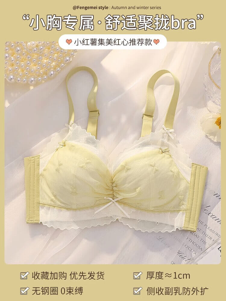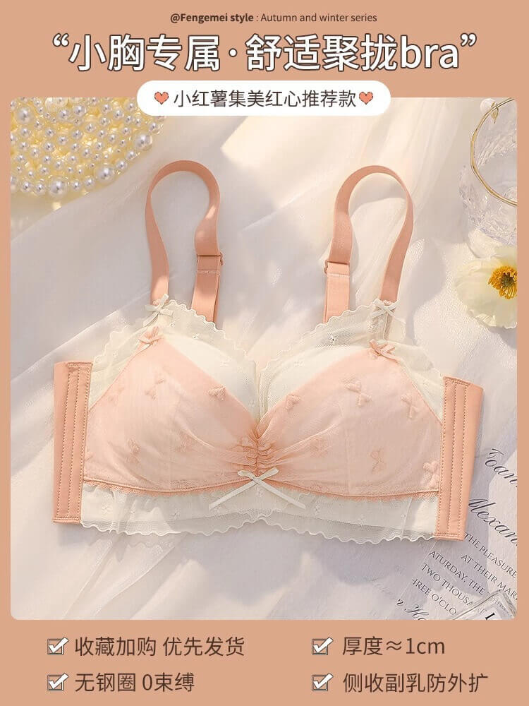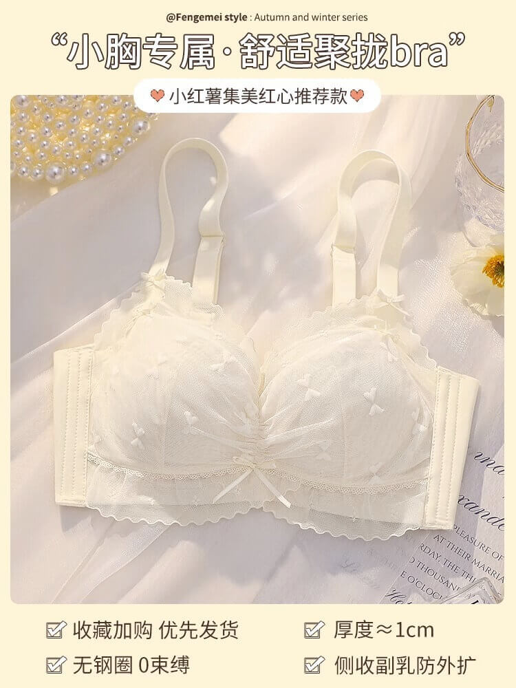 【性感蕾絲內衣】純欲風~蕾絲網紗面料,透氣性感甜美內衣,小胸聚攏上托側收副乳~無鋼圈内衣!