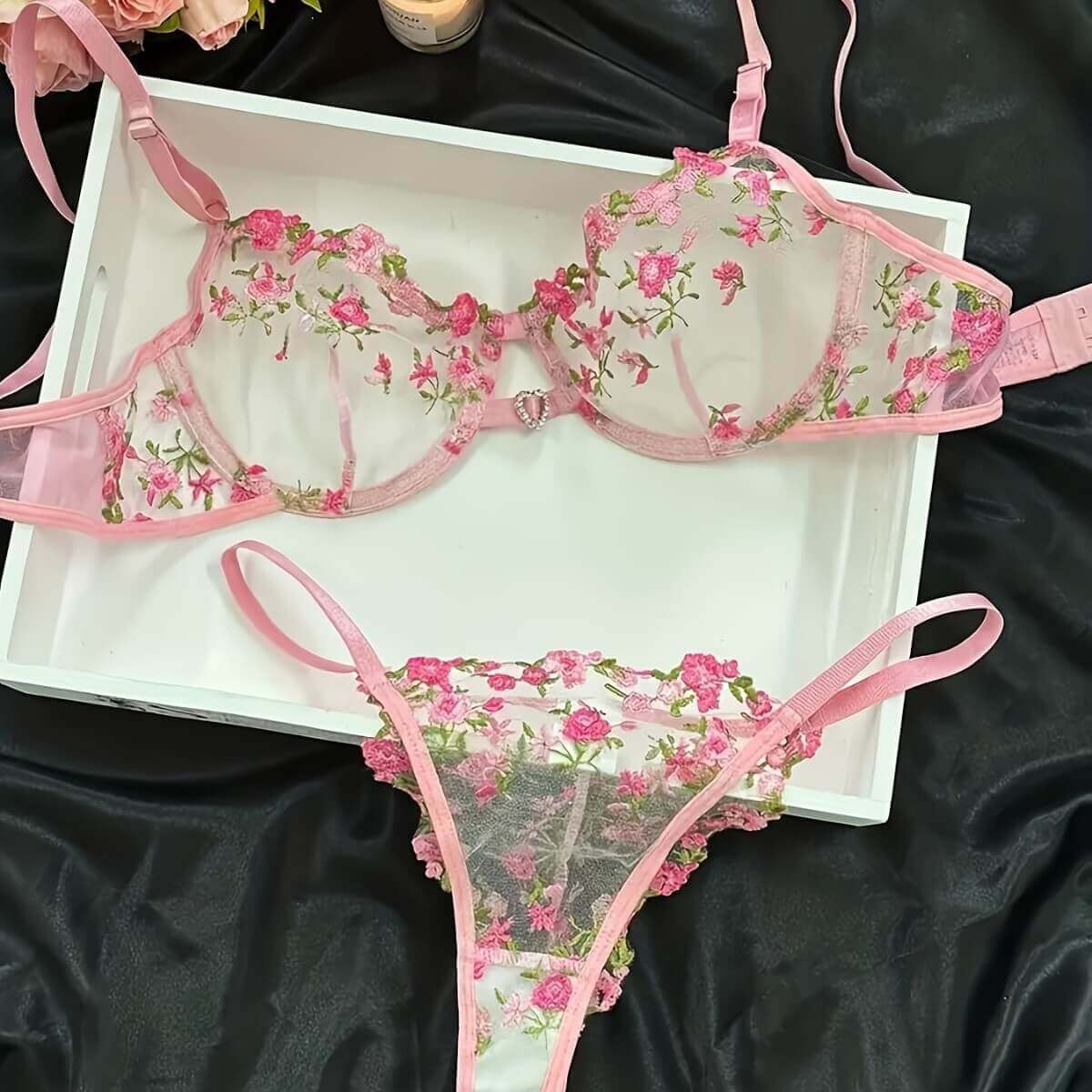 調戲~小清新性感内衣蕾絲刺繡網紗純欲誘惑情趣内衣帶鋼圈情趣套裝