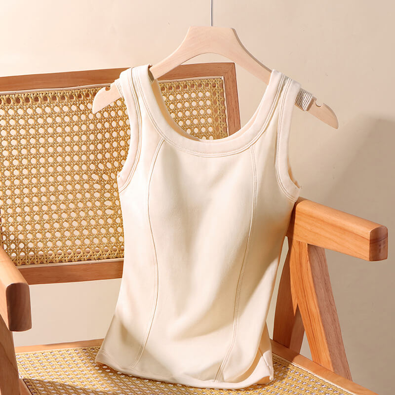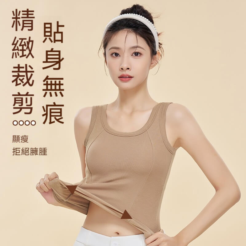 【保暖羊毛!潤膚小背心~】秋冬新款一體式固定杯保暖女士内衣!德絨加熱,美背貼身,無痕磨毛更舒適!