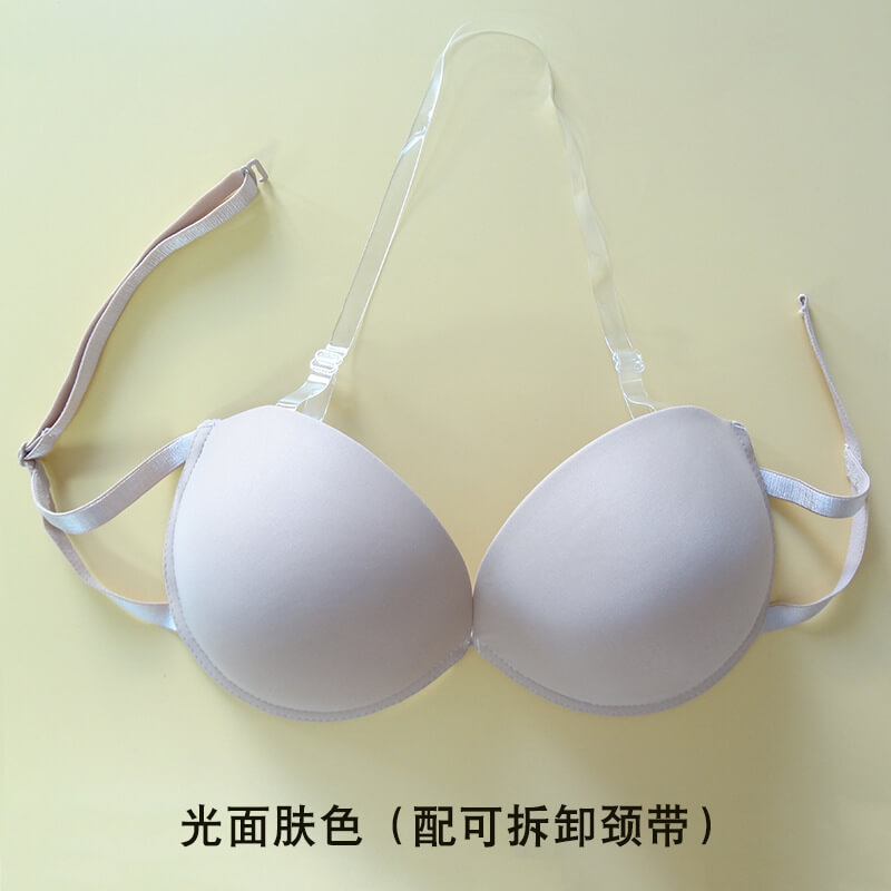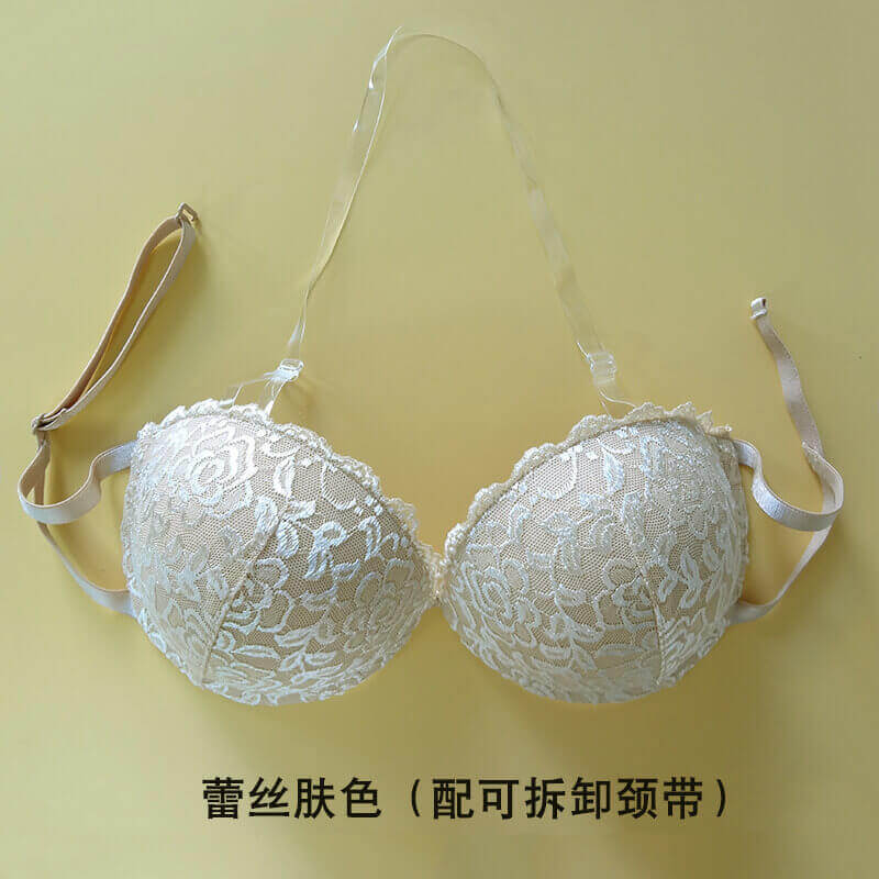 前扣美背!无肩带内衣!小胸聚拢,蕾絲杯麵性感抹胸,配可拆卸透明頸帶!