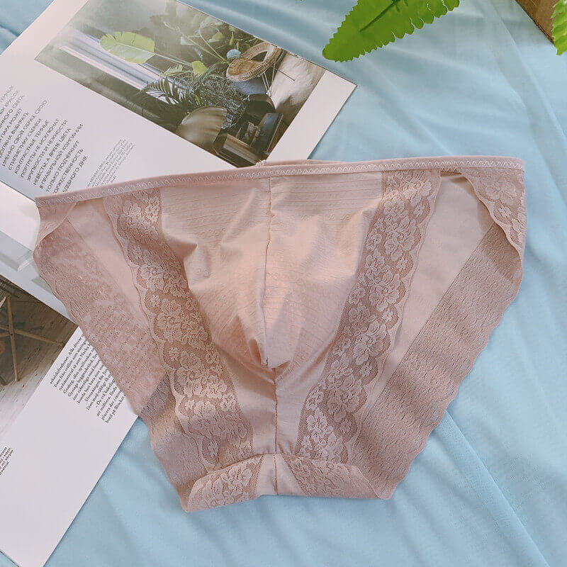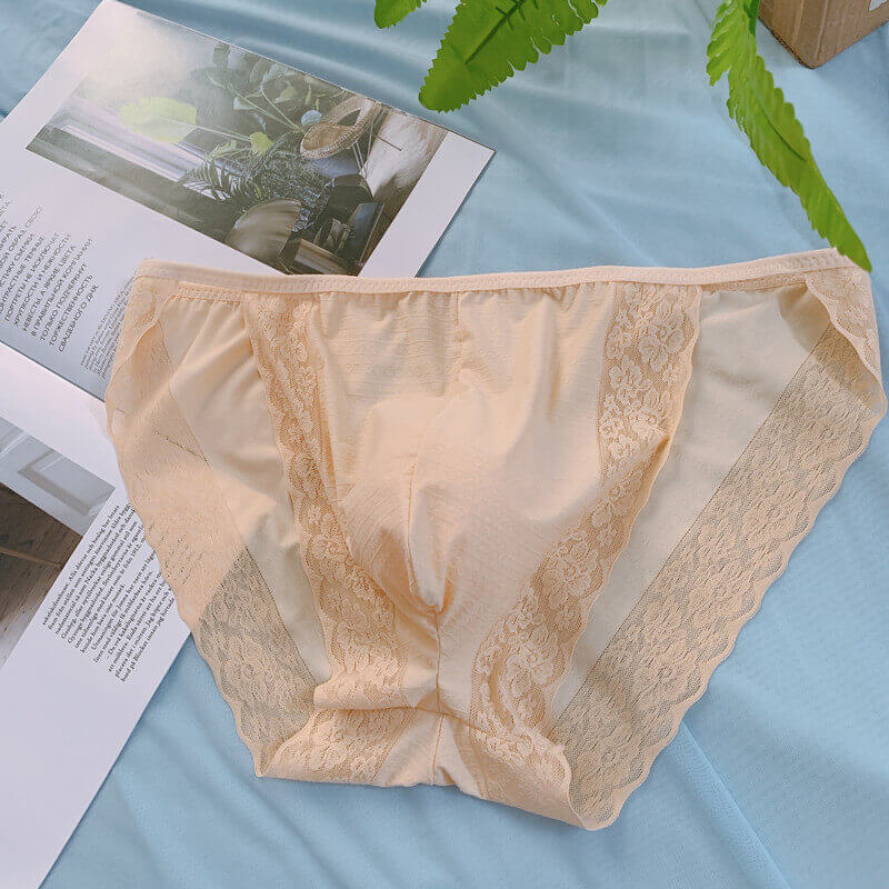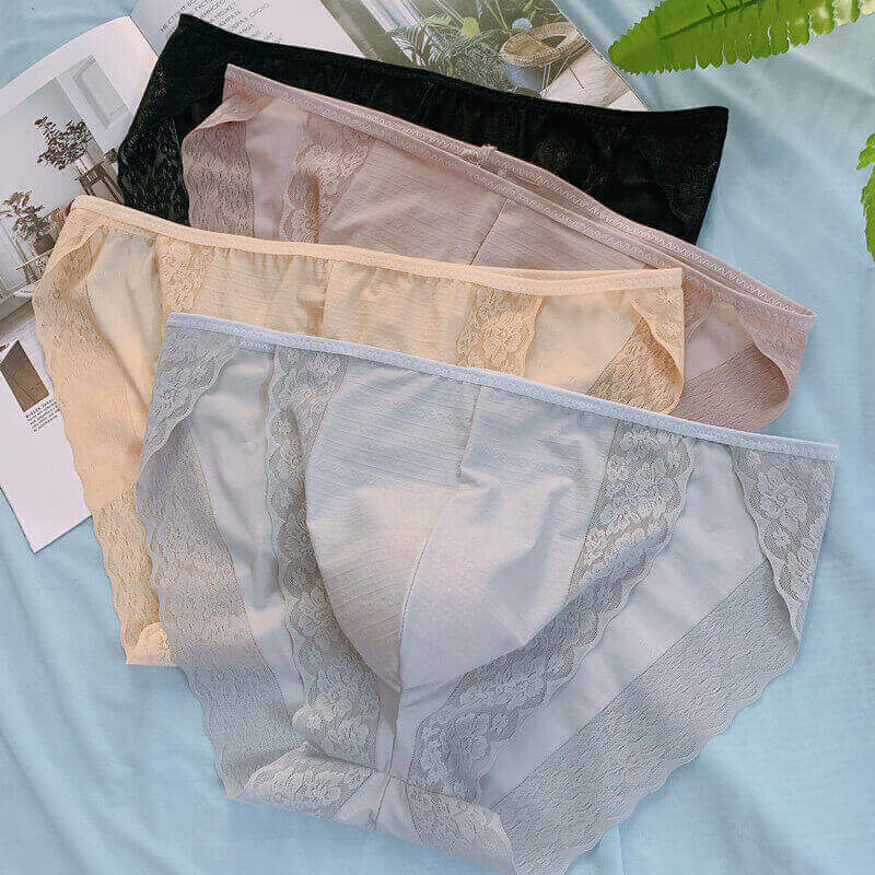 內褲_蕾絲誘惑_新款情趣性感蕾絲誘惑囊袋男士内褲舒适柔軟冰絲無痕男大碼三角褲