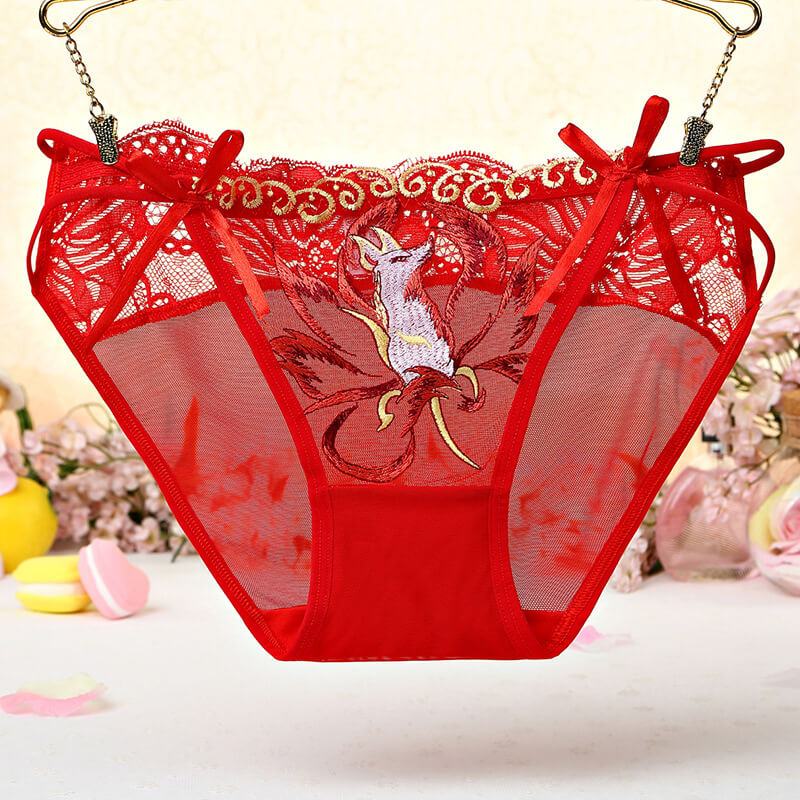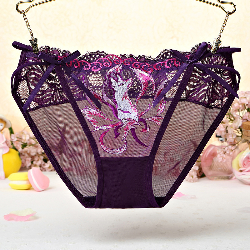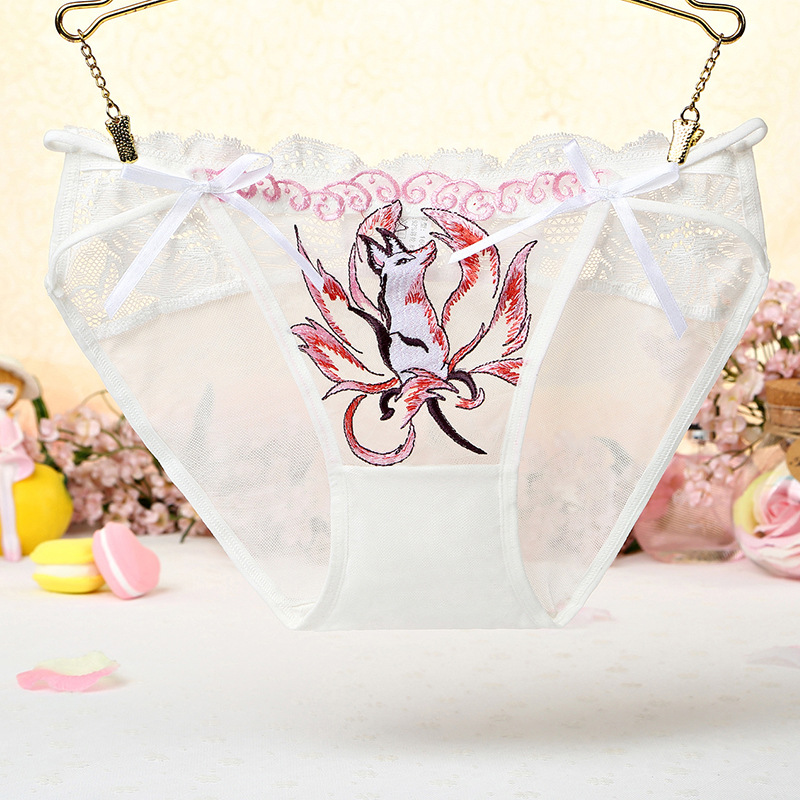【高透誘惑呀】狐狸刺繡性感新款内褲女日系透明誘惑低腰蕾絲薄款透氣三角褲頭