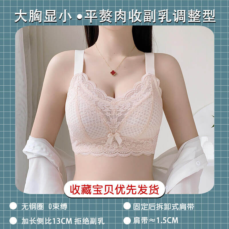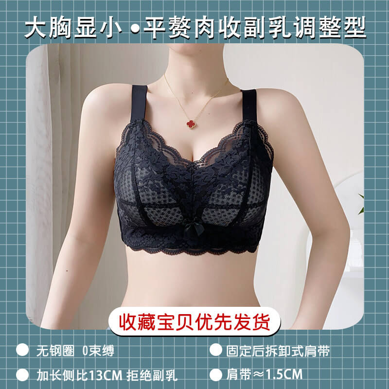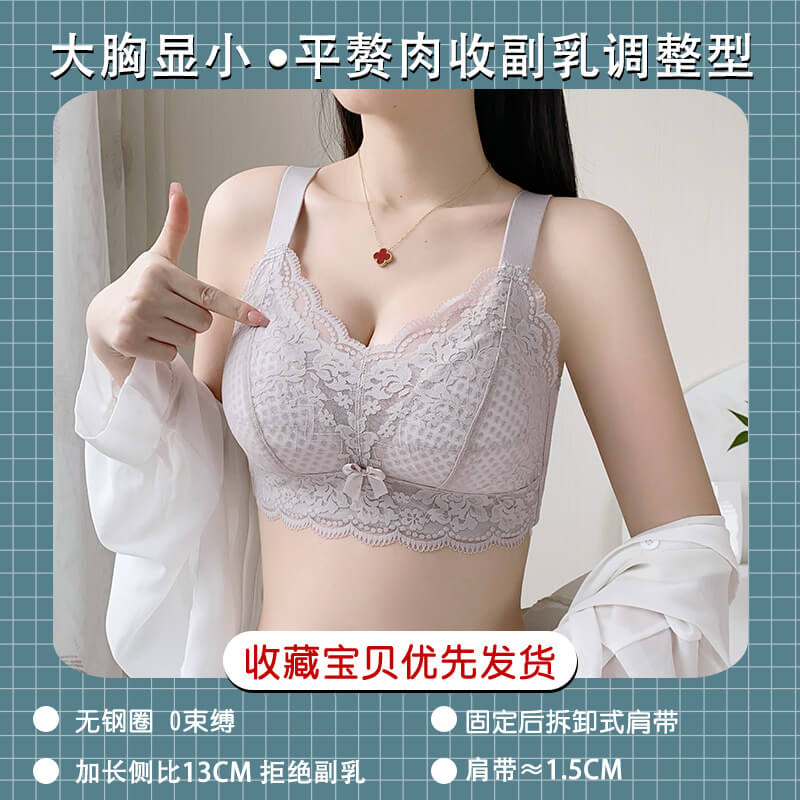 【大胸顯小】大碼蕾絲内衣女大胸顯小薄款聚攏顯瘦防下垂收副乳透氣無鋼圈文胸