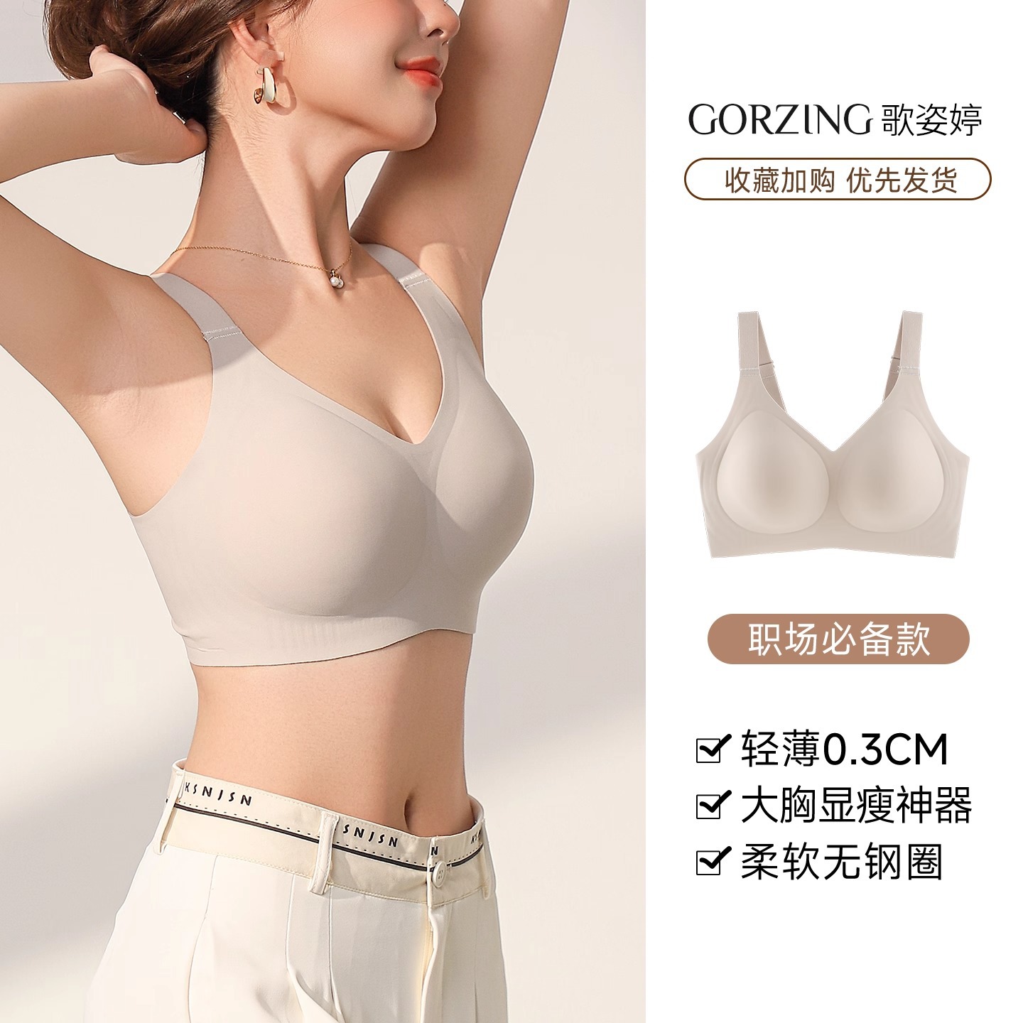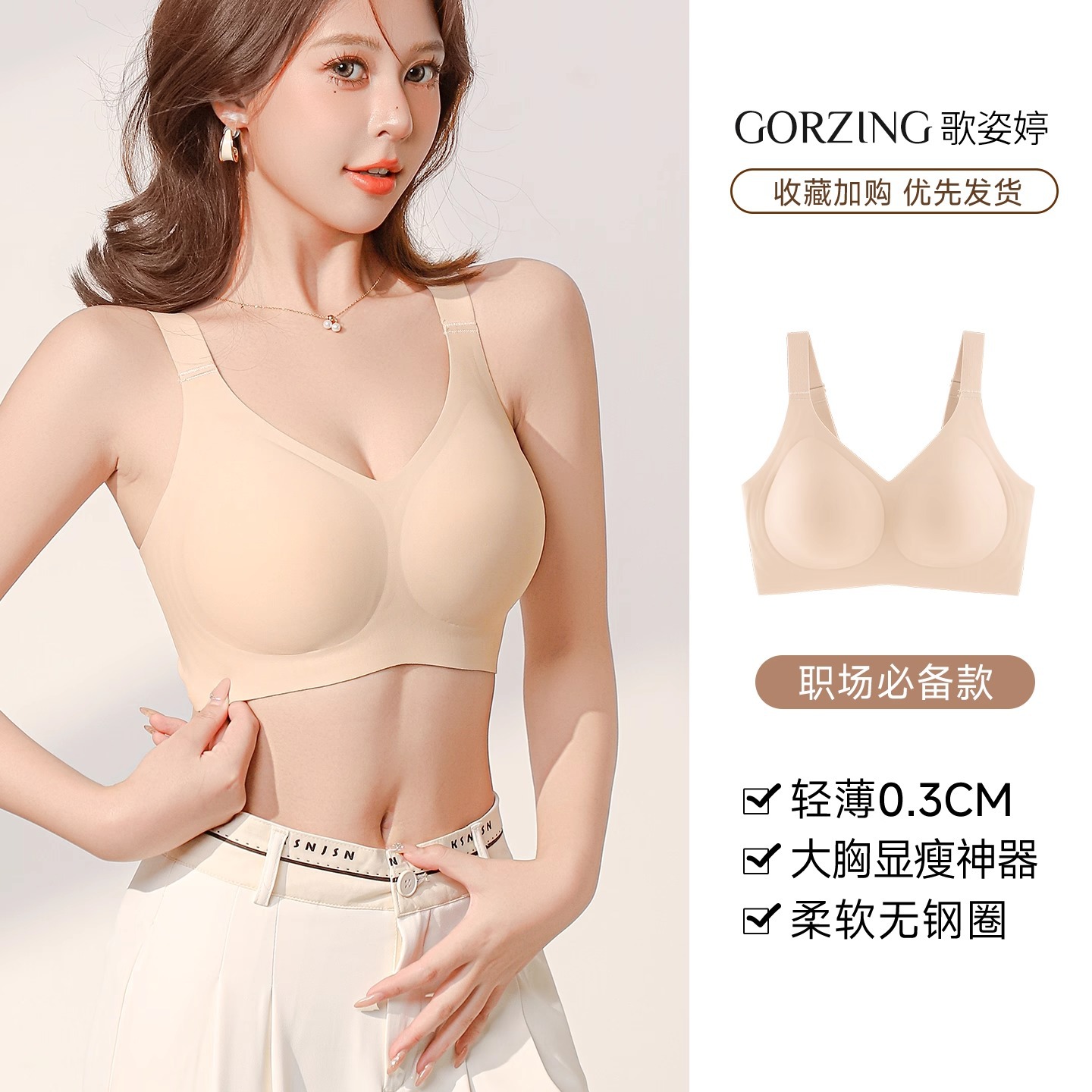 【收副乳 超大杯】無痕内衣女大胸顯小聚攏全罩杯薄款防下垂收副乳大碼塑型文胸罩夏