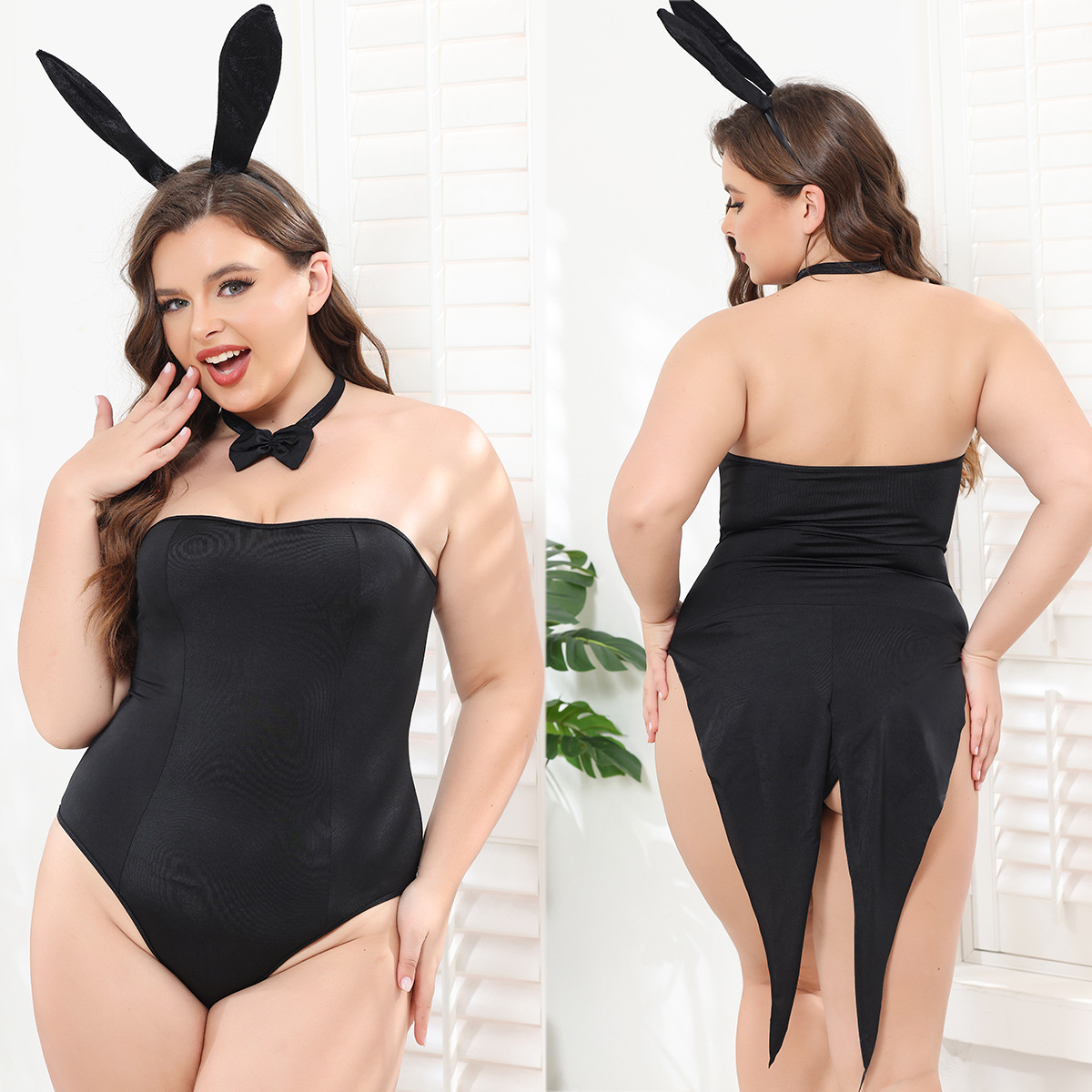 【性感兔子裝】歐美大碼性感镂空情趣制服!俏皮兔女郎免脫連體衣制服套裝!