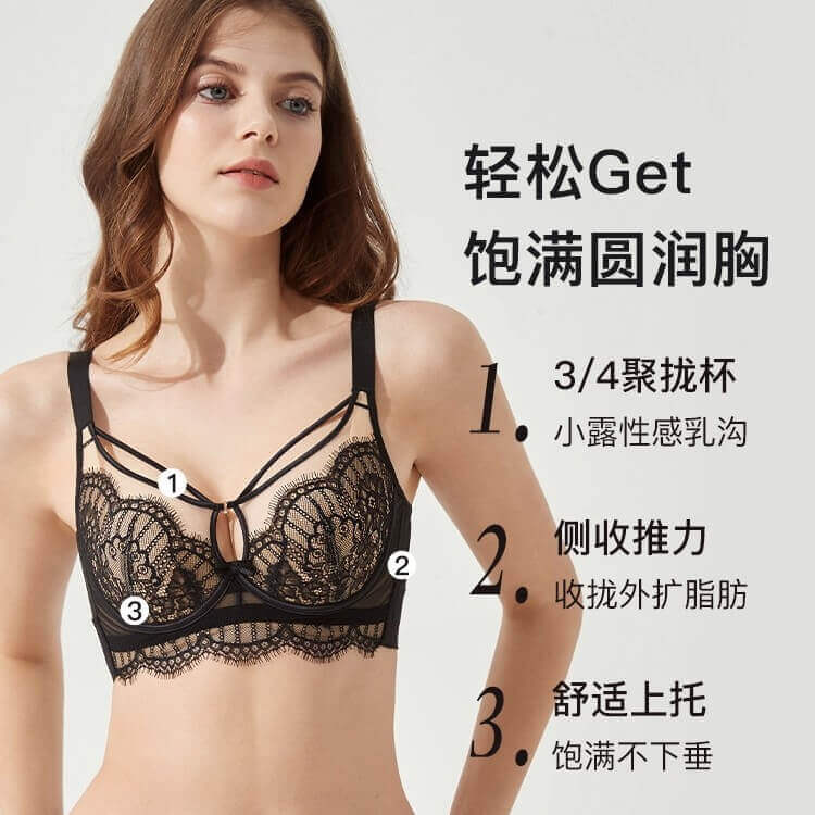 【法式薄杯】軟鋼圈法式文胸夏超薄性感兔耳朵内衣女大胸顯小胸罩收副乳防下垂