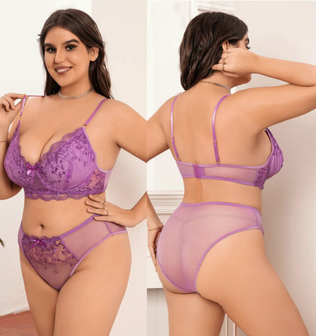 【紫羅蘭刺繡】歐美爆款大碼胖MM內衣!大胸顯小聚攏上托蕾絲刺繡性感紫色內衣套裝!