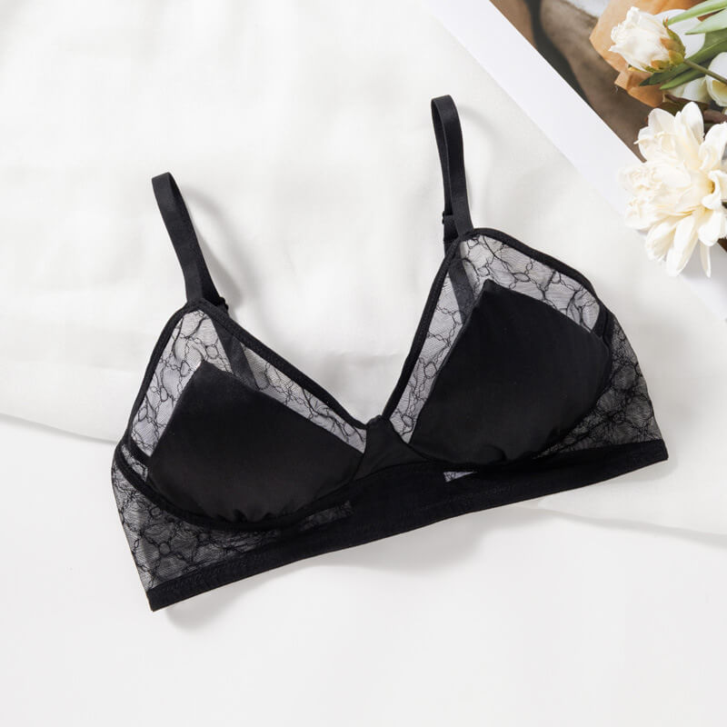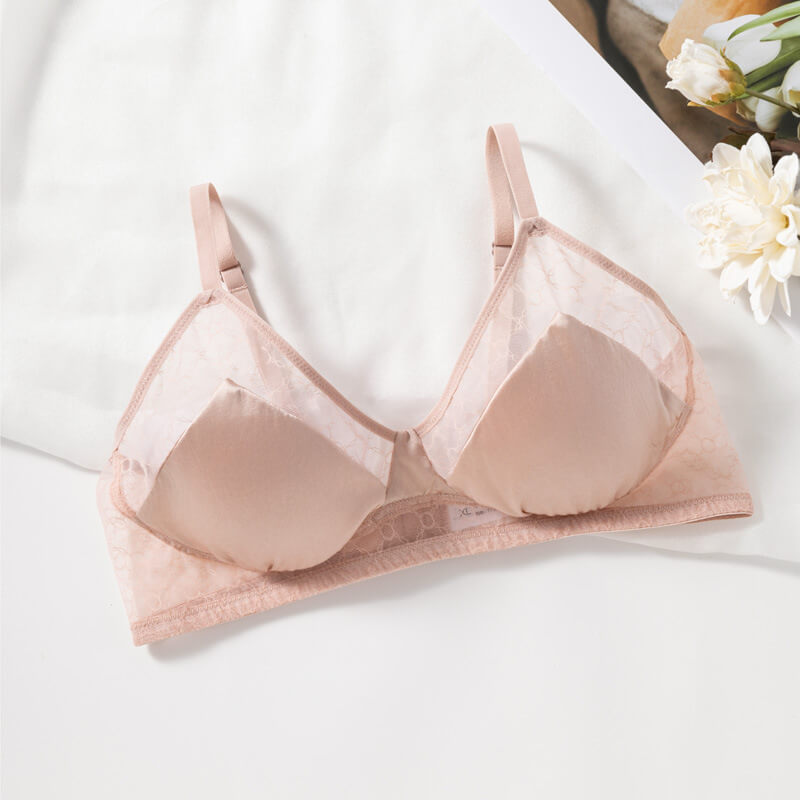 【性感蕾絲內衣】純欲風~蕾絲網紗面料,新款網布無鋼圈桑蠶絲真絲三角杯法式内衣透氣性感甜美內衣,小胸聚攏上托側收副乳~無鋼圈内衣!