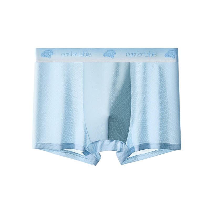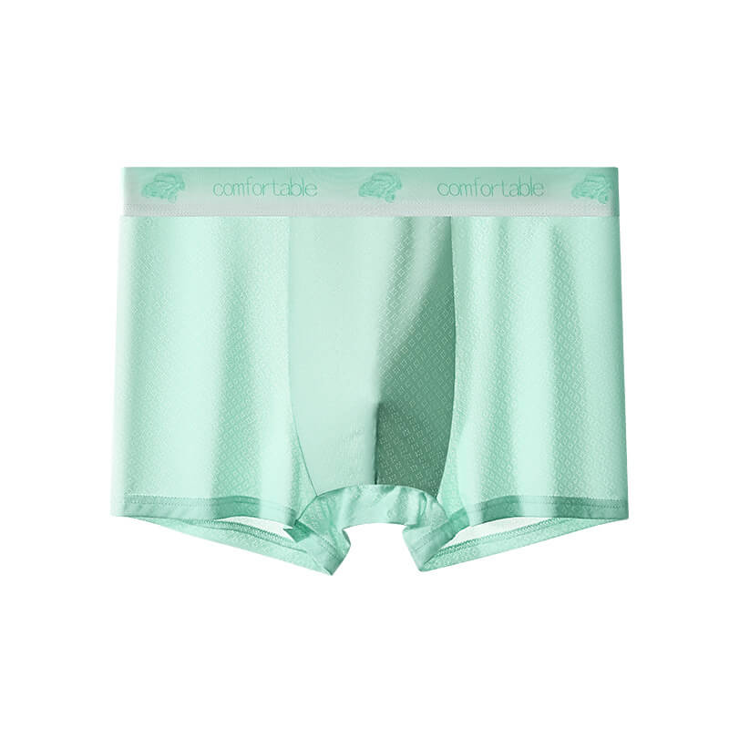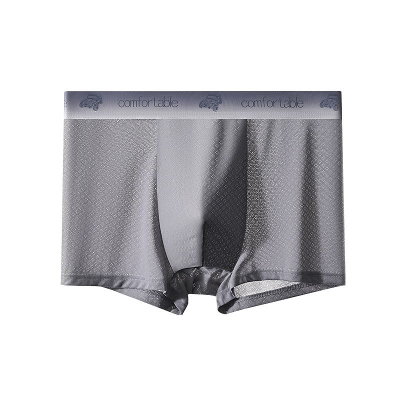 內褲~男士内褲夏季透氣冰絲平角褲男生提花四角短褲頭青年中腰褲衩薄款