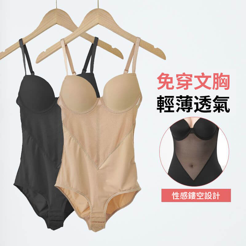 【免穿內衣!塑身美體!】夏日女神衣櫃必備款!排扣底襠!帶胸罩瘦身收腹連體衣,束腰/提臀/可拆卸肩帶,網紗透氣質感,輕鬆顯瘦!