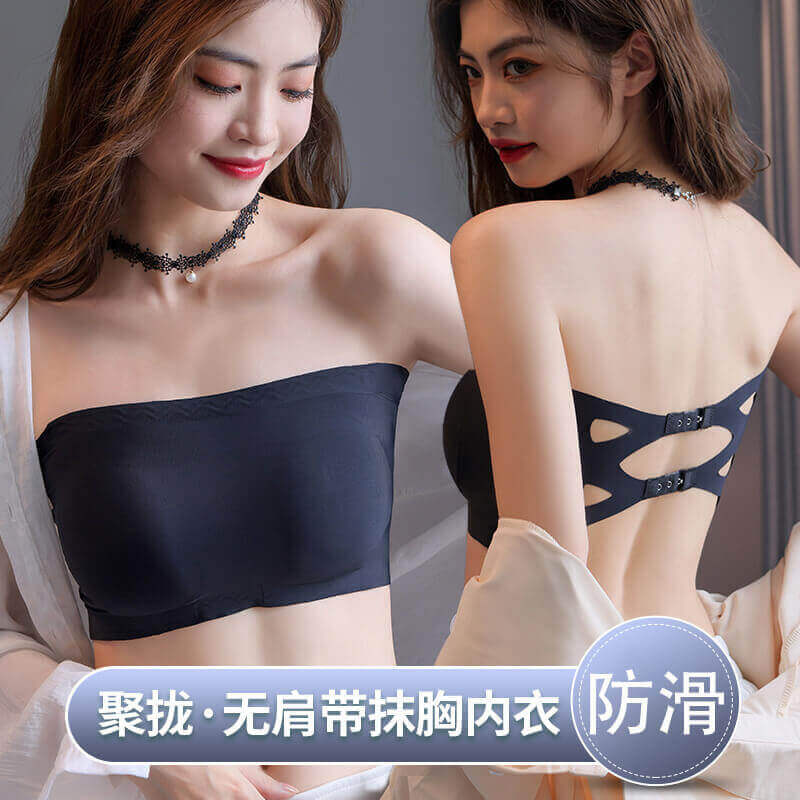 內衣_內搭神器_爆款冰絲無痕一字圍無肩帶抹胸内衣防滑美背帶胸墊防走光裹胸5色可選