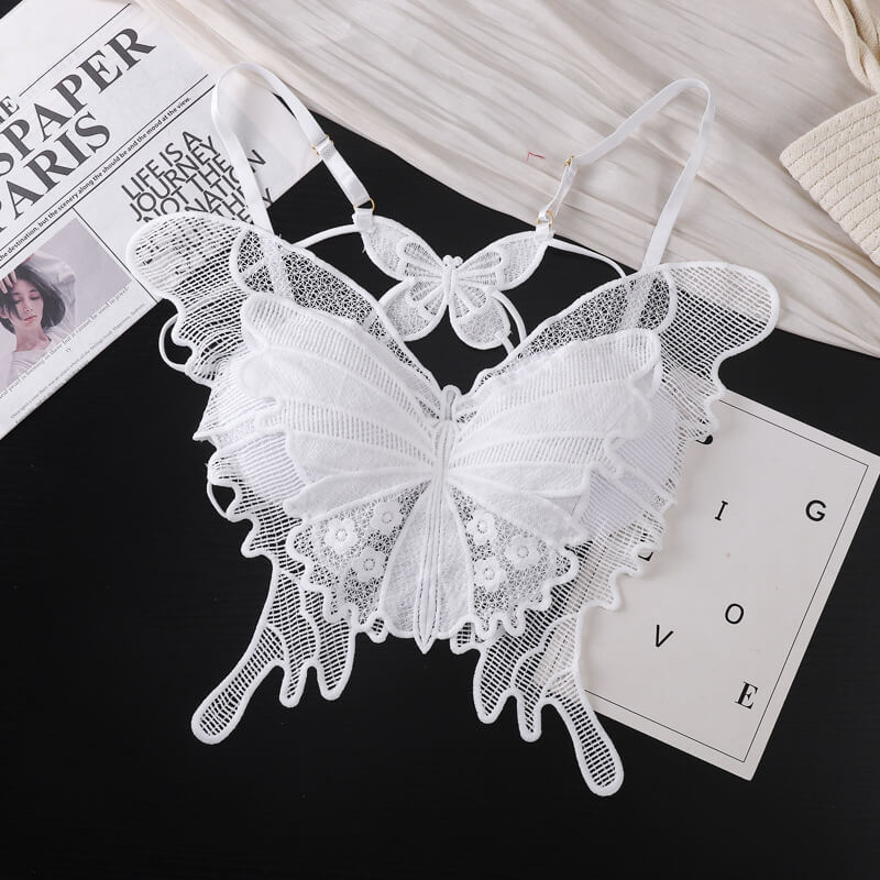 【超好看】性感法式蕾絲蝴蝶镂空吊帶背心内搭帶胸墊裹胸交叉美背内衣上衣女