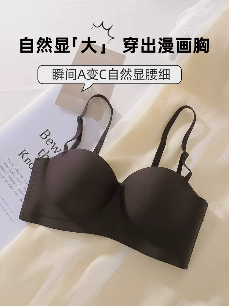 內衣_自然顯大_聚攏内衣女小胸無痕顯大防滑上托一片式平胸專用文胸罩外擴顯大文胸A罩杯B罩杯