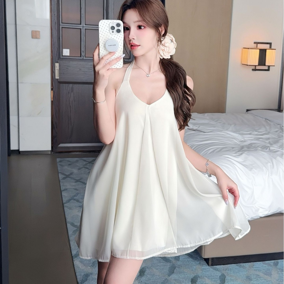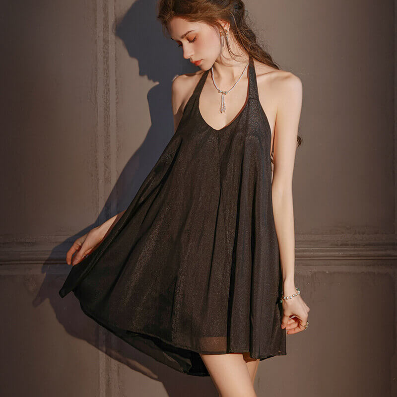 【吊帶睡裙】性感睡衣女挂脖蓬蓬裙純欲吊帶睡裙美背純色家居服可外穿
