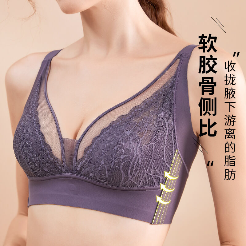 【性感文胸】提拉側收三明治兔耳朵杯女士文胸超薄溫變輕氧水晶杯内衣大胸顯小